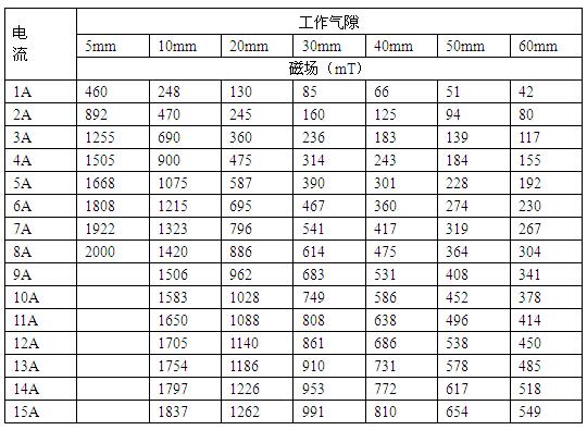 3.3、磁感应强度:工作气隙20mm时,H≥1.2T;工作气隙60mm时,H≥0.5T;